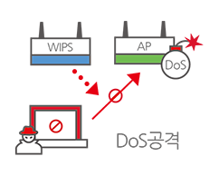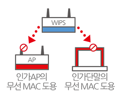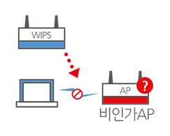 WIPS는 WLAN 표준을 준수하는 모든 무선장비에 대한 모니터링을 통해 내외부로부터 발생할 수 있는 각종 보안취약점을 탐지·차단하여 내부 네트워크를 보호합니다.